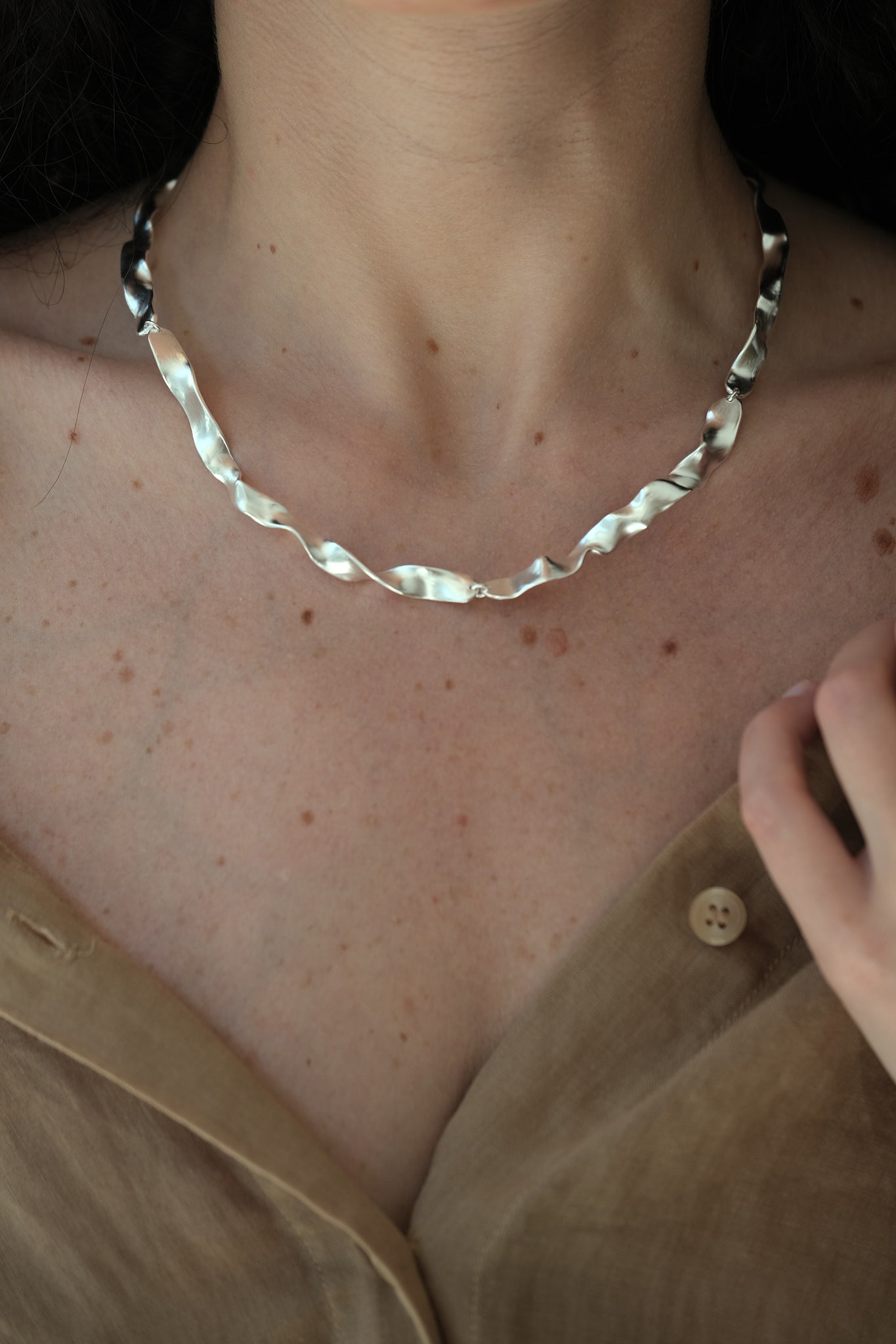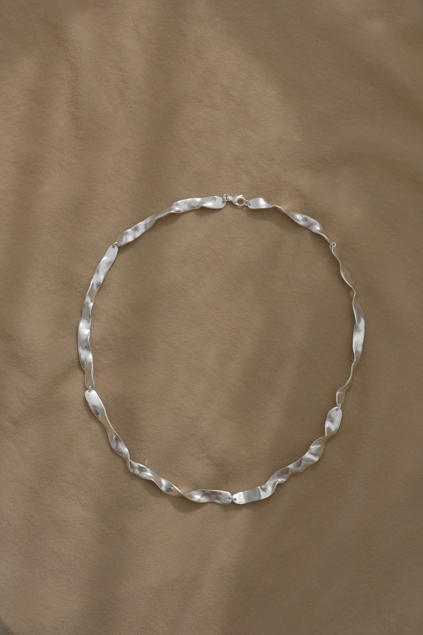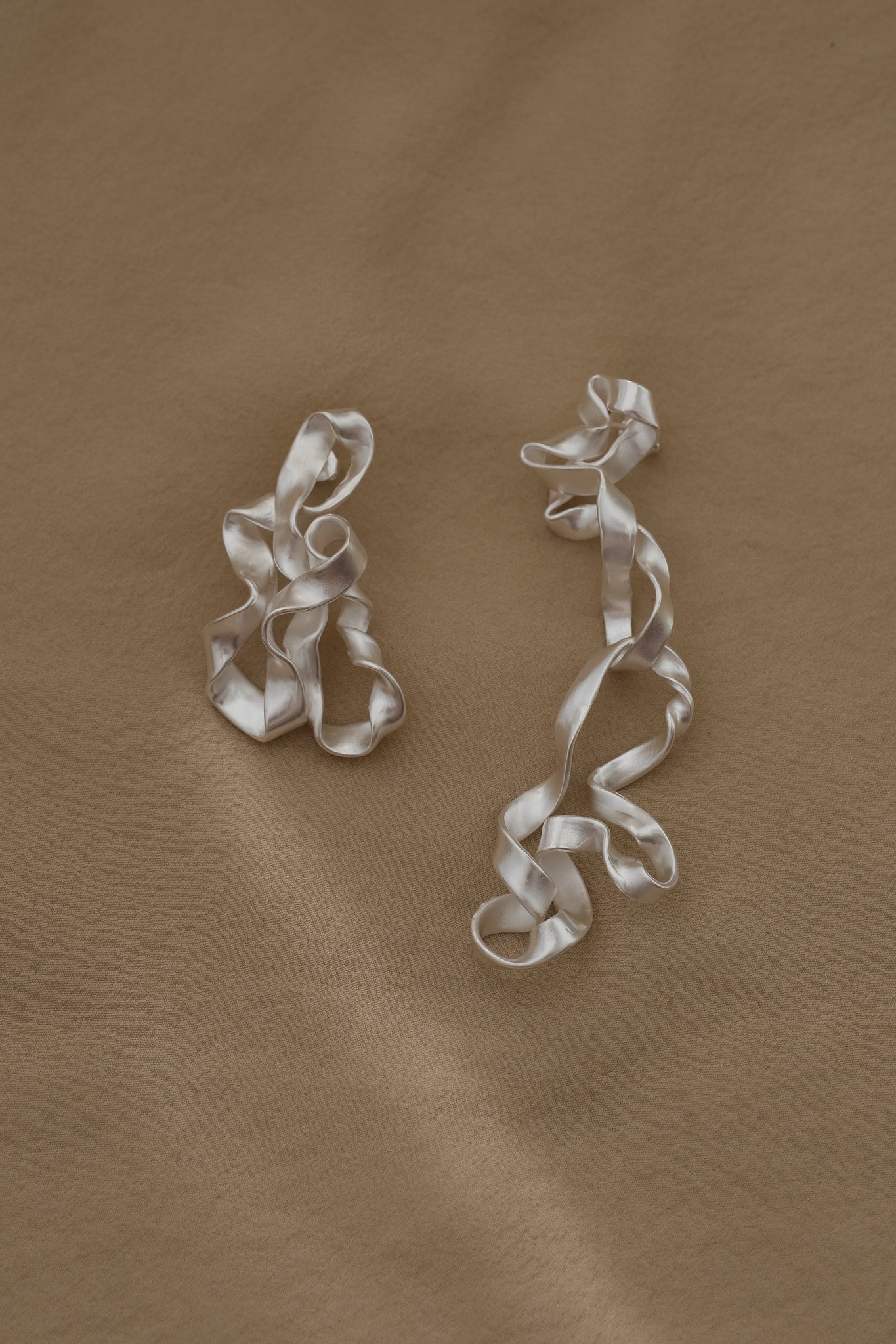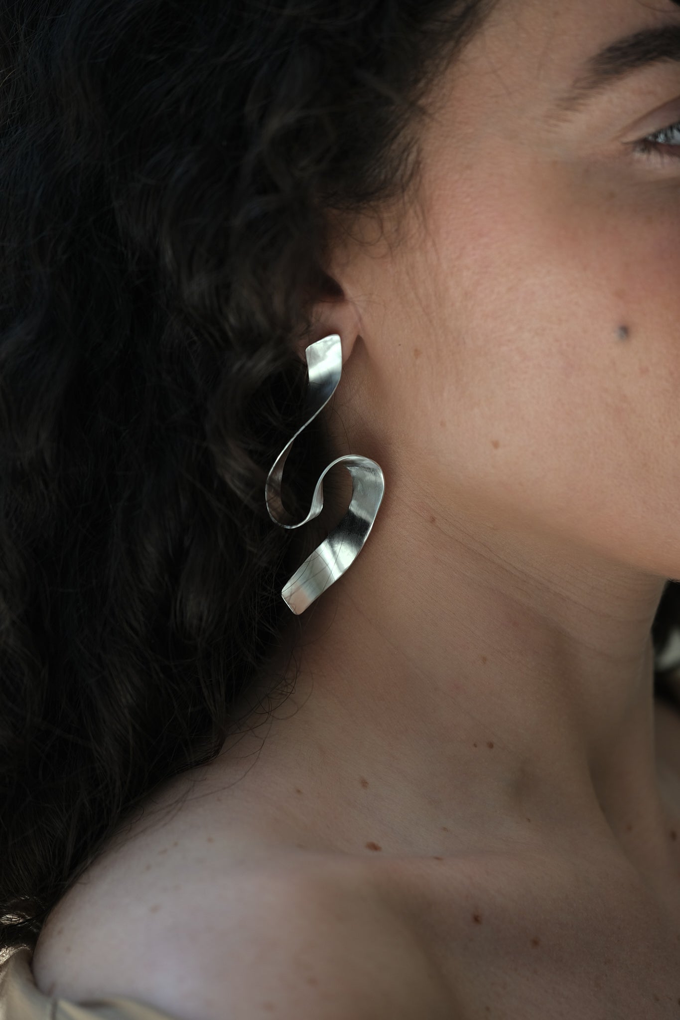 Licht trifft auf Wasser, Reflexionen tanzen sich in faszinierende Formen. Schimmernd mit der Natürlichkeit von Perlen besetzt, kräuseln sich Silberstücke zu ausdrucksstarken Gebilden. Jedes Stück besteht aus recyceltem 925er Silber und poliert zu einer glänzenden oder matten Oberfläche, je nach den Eigenschaften des Designs. Sie werden in unserem Atelier von Hand geformt, was ihnen den Charme von natürlicher Unregelmässigkeit verleiht.