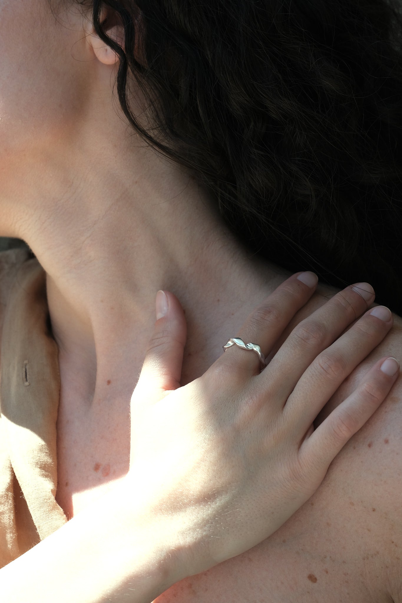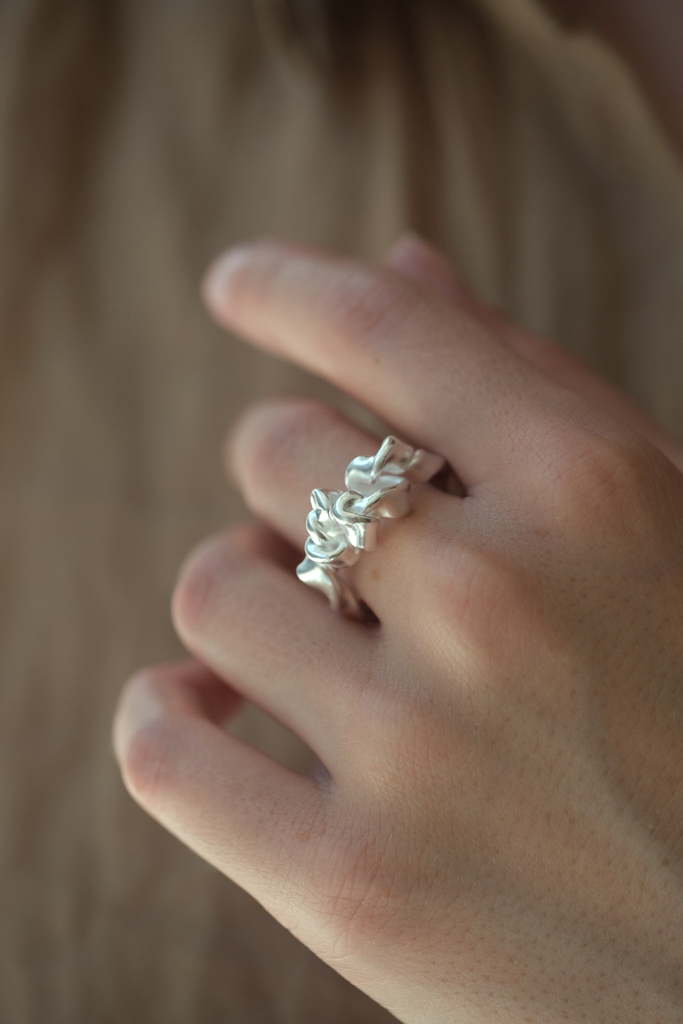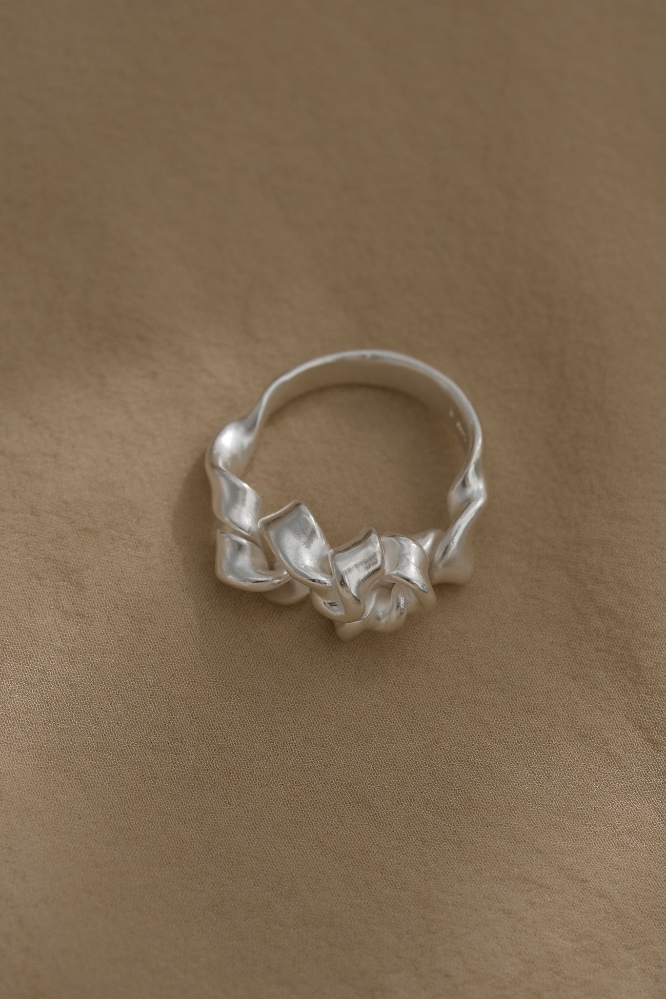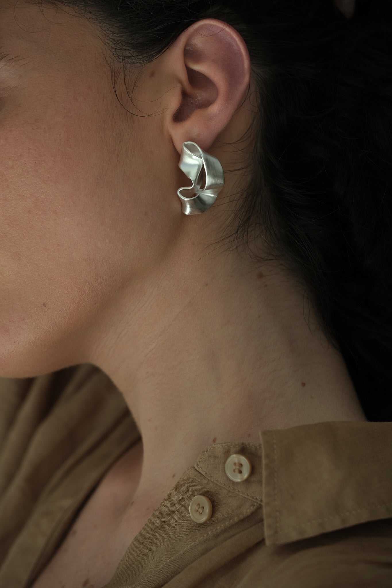 Wie verwelkte Blütenblätter, die sich unerwartet einrollen, metamorphisch zusammenfalten. Die daraus entstehenden Formen offenbaren die Schönheit eines gelebten Lebens – Essenz der Zeit, festgehalten von der Natur. Jedes Stück besteht aus recyceltem 925er Silber oder vergoldetem Silber und hat eine satinierte Oberfläche. In unserem Atelier in Handarbeit hergestellt, bringen diese Unikate den Charme von natürlichen Unregelmässigkeiten mit.