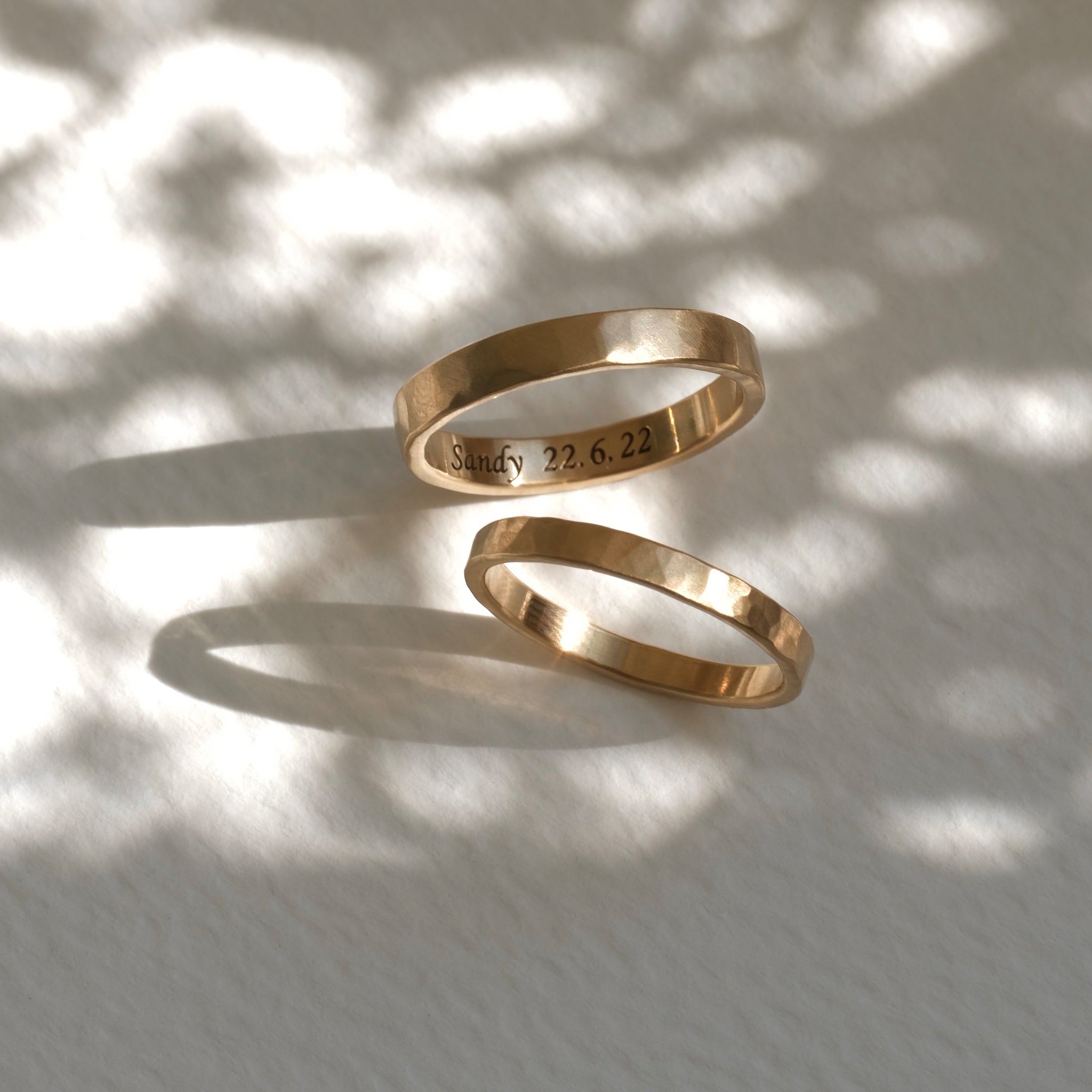 Eure Namen in Handschrift oder ein Symbol, das eure Verbundenheit widerspiegelt – wir gravieren eure Ringe auf der Innenseite ohne zusätzliche Kosten. Dafür arbeiten wir mit einem erfahrenen Lasergraveur in der Schweiz zusammen.