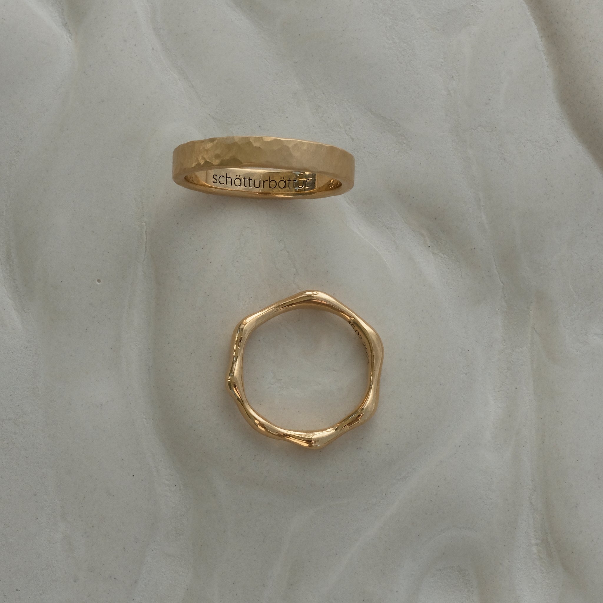 Ihr fühlt euch von unserer Ästhetik angesprochen? Dann lasst uns eure Vorstellungen besprechen und gemeinsam eure Eheringe oder Freundschaftsringe entwerfen. Lea Good, Creative Lead von BAIUSHKI mit jahrelanger Erfahrung im Schmuckdesign und in der handwerklichen Fertigung, bringt ihre unverkennbare Formensprache in das Design ein.