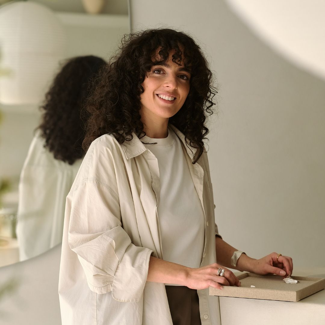 Taking care of our client relations, Anita Kastrati welcomes you here in our studio with brightness and warmth. With a love for art and an eye for detail, she blends her sense for styling and aesthetics with a gentle approach to advise you on your journey of finding your perfect BAIUSHKI jewelry.